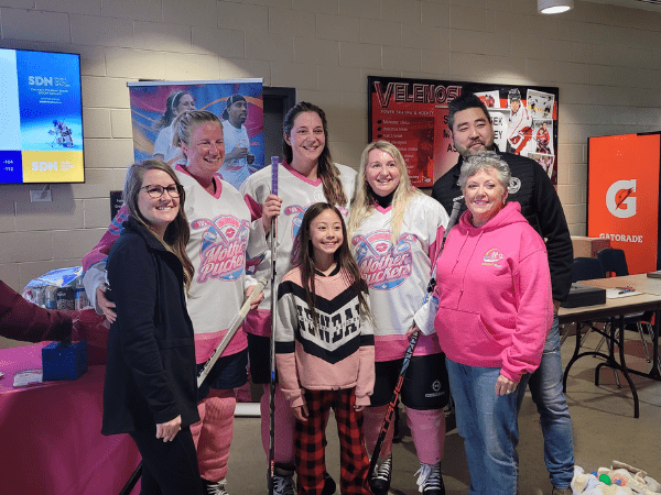 Meanwhile, BRIGHT volunteers staffed a table at the three-day annual Hamilton Women’s Hockey League (HWHL) tournament. The penny sale debuted, pink ribbon socks sold for $5 each, and there was a draw for a Professional Women’s Hockey League Toronto autographed Sarah Nurse jersey.