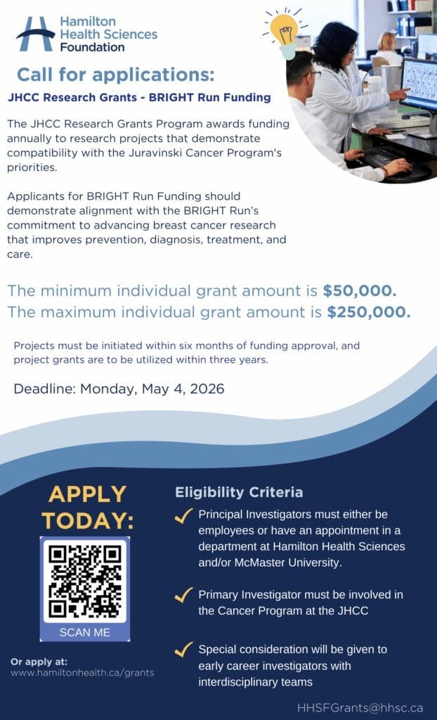 We’re looking forward to seeing the critical research proposals that are accepted for funding this year in the Hamilton Health Sciences Foundation’s call for grant proposals!